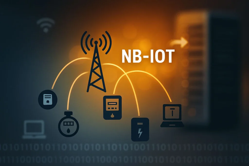 NB-IoT (Narrowband IoT) är telekombranschens svar på LPWAN. Det är en radioteknologistandard i licensierade band, utvecklad för att ge en kombination av lång räckvidd och hög energieffektivitet inom IoT. Tekniskt lanserades NB-IoT som en del av 3GPP Release 13 (en del av 4G/LTE-familjen) och ingår nu i 5G-standardportföljen. NB-IoT modulaterar smalbandiga signaler (~200 kHz) och utnyttjar befintlig mobilnätinfrastruktur (basstationer) för att kommunicera. I praktiken innebär detta att en NB-IoT-enhet (t.ex. en vattenmätare med NB-IoT-modem) kopplar upp sig mot mobilnätet precis som en vanlig telefon gör, men på ett mycket strömsnålare och enklare sätt. Varje enhet behöver ett SIM-kort eller eSIM (ofta speciella IoT-SIM) och ett tillhörande dataabonnemang hos en mobiloperatör.